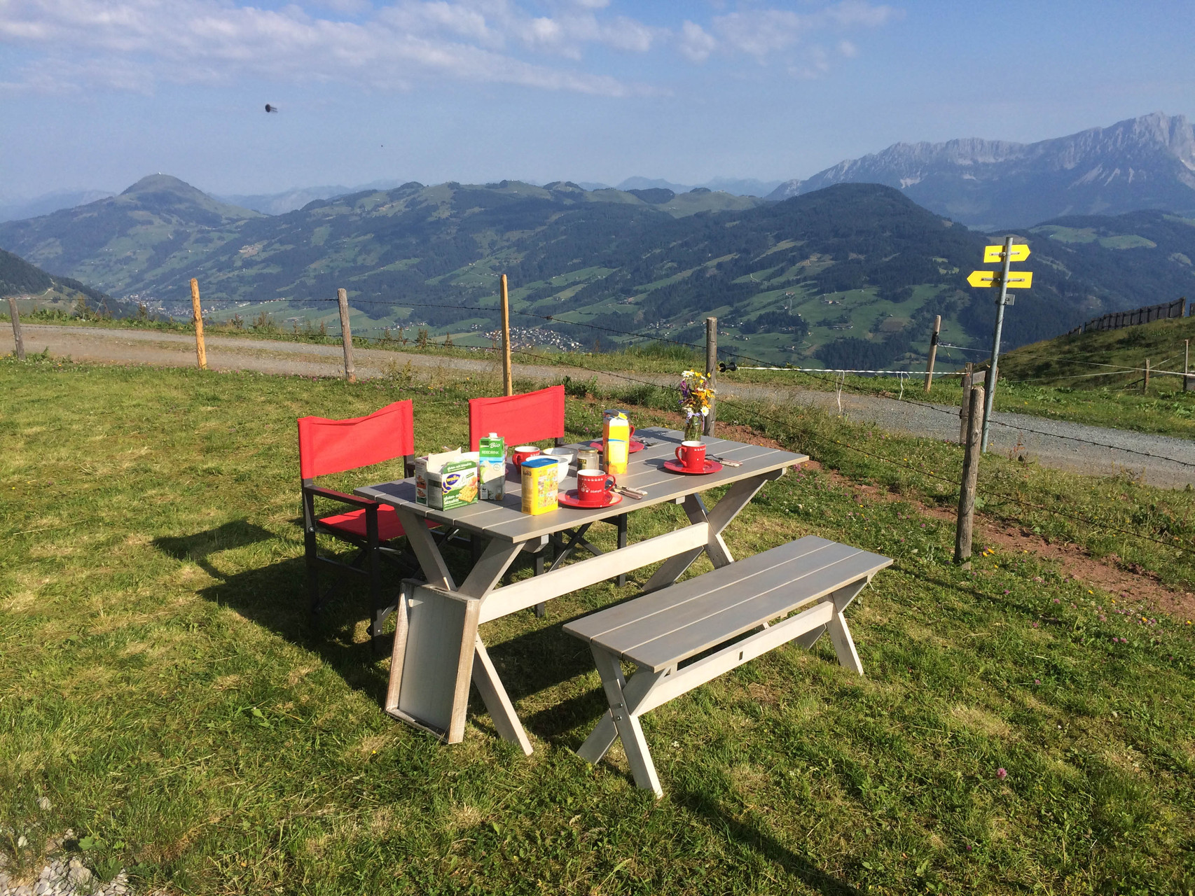 Hoch in den Kitzbüheler Alpen liegt auf ca. 1600 m eine Alm. Die idyllische Lage auf einem Bergrücken mit grandiosem Blick auf das Wilde Kaiser Gebirge lädt gerade zu ein, sich die Schönheit der Natur bewusst zu machen und zur durch sie zur inneren Ruhe zu kommen und eigene Kräfte zu aktivieren. Die Alm ist im Sommer zu Fuß erreichbar, nach einer ca. 1 stündigen Fußwanderung. Im Winter können Sie mit der Bergbahn in das Gebiet gondeln und mit einer Skiabfahrt, zu Fuß oder mit dem Skidoo die Hütte erreichen.