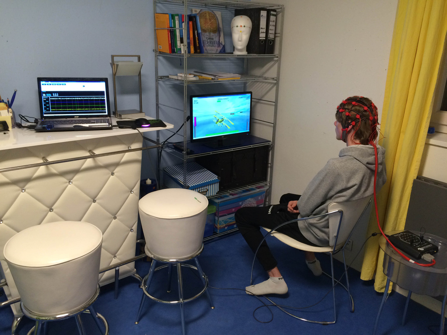 Beim Neurofeedback werden Elektroden auf den Kopf geklebt, um dann die elektrische Aktivität des Gehirns mittels EEG (Elektro enzephalogramm) aufzuzeichnen. Diese EEG-Wellen geben in ganz bestimmter Weise Auskunft über Zustände und kognitive Prozesse im zentralen Nervensystem. Dabei steht zweifelsfrei fest, dass diese Wellenmuster sich je nach psychischem und physischem Zustand des Menschen ändern.